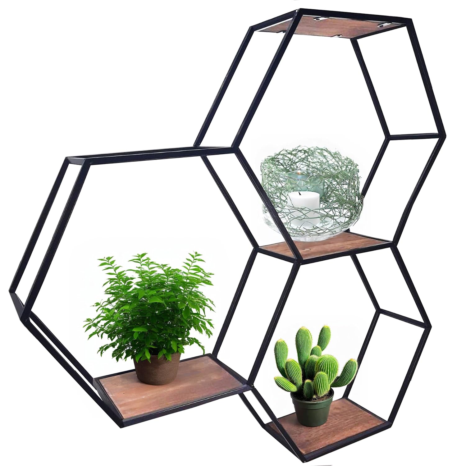 Admired By Nature 3-Tier Hexagon Floating Wall Shelf