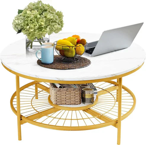 Go to the shopAnasay Designer Round Modern Center Table with White Marble Finishing wooden Top & Golden Metal Base